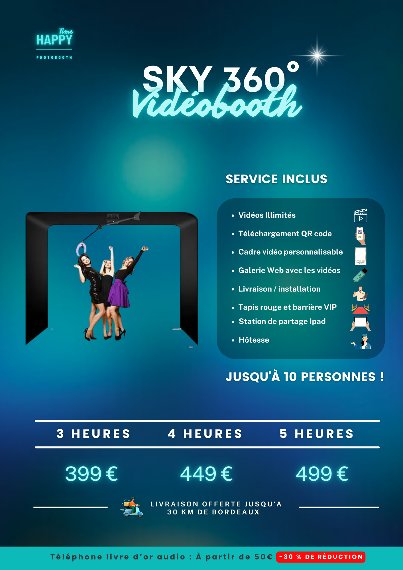 EXCELLENT Basée sur 151 avis Publié sur Cécile LE ROUX17/12/2025 Nous avons fait appel à cette société dans le cadre d'un événement d'entreprise. Le photobooth a été très apprécié par les équipes! Notre contact chez Happy time location s'est montré très réactif et adaptable. Je recommande vraiment cette société pour ce type de prestation! Merci encore!Publié sur Solène Dhal15/12/2025 Les équipes Happy Time nous ont fournis l'une de leur machines à l'occasion de notre soirée de Noël d'entreprise sur Bordeaux. L'installation et le retrait du photobooth s'est très bien passé. Les photos sont TRÈS qualitatives et tous les collaborateurs sont ravis d'avoir ces beaux souvenirs. Nous n'hésiterons pas à refaire appel à eux pour l'uns de nos futurs évènements.Publié sur cécile Constantin03/12/2025 Nous avons loué un photobooth pour un anniversaire et nous ne sommes pas déçus. Simple à installer, équipe agréable et disponible bref je recommande les yeux fermés Happy Time Location Photobooth. Un grand merci à toute l'équipe pour votre professionnalisme !Publié sur Margot Cazabat-Martinez02/12/2025 Personnel disponible à tout moments de la journée, rapide, simple et efficace ! Qualité au top impression rapide et utilisation simple. Rien à dire… je recommande à 100% ! N’hésitez plus.Publié sur Nadege Dubuis18/11/2025 Une demande simple et efficace. Très sérieux, de vraies professionnels à notre écoute. Une promesse plus que tenue. Toujours présent pour des questions. Une superbe installation et des souvenirs qui vont pouvoir rester gravé. Je recommande chaleureusement car ils ont rendu le projet merveilleux. Merci mille fois.Publié sur Cam ILLE12/10/2025 Nous avons loué un photobooth pour un anniversaire. Nous avons été très bien conseillé suite à la demande de devis. Installation et utilisation facile. Nos invités ont adorés ! Je recommande happy time pour vos événementsPublié sur kelly. B12/10/2025 Photobooth pris pour notre mariage au top. Il a fait sensation. Merci a vous pour votre professionnalisme, votre gentillesse. Nous recommandons fortement la location avec happytime.Publié sur Julien Bonnamour09/10/2025 Son concept est top, Merci à Gamal pour sa sympathie, son sourire et son professionnalismePublié sur alexis argaud08/10/2025 Merci pour votre prestation, le matériel était super. Vous avez répondu à notre demande. Merci beaucoup et sans aucun doute à très bientôtPublié sur Sam Fonvieille08/10/2025 Tout était parfait, de la prise de contact au rendu du matériel. Je recommande sans hésitations !